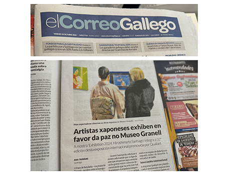 また、会場には現地メディア(TVと新聞)の取材が入り、本展の開催模様と開催記念セレモニーの様子が、地元紙『el Correo Gallego(エル・コレオ・ガジェーゴ)』と『La Voz de Galicia(ラ・ボス・デ・ガリシア)』で紹介されました。地元紙はともに読者の多い新聞として知られ、テレビのニュースで本展を知り翌日に訪れて下さった人も多く、現地で高く注目されたそうです。