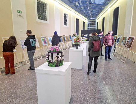 歴史と文化を紹介する施設に隣接する展覧会場に、日本各地から集まった日本画、洋画、彫塑、陶芸、工芸、写真、書道など195点が展示されました。会期中、多くのご来場者で賑わい、会場内が熱気に満ちるなか、作品を鑑賞いただくことが叶いました。